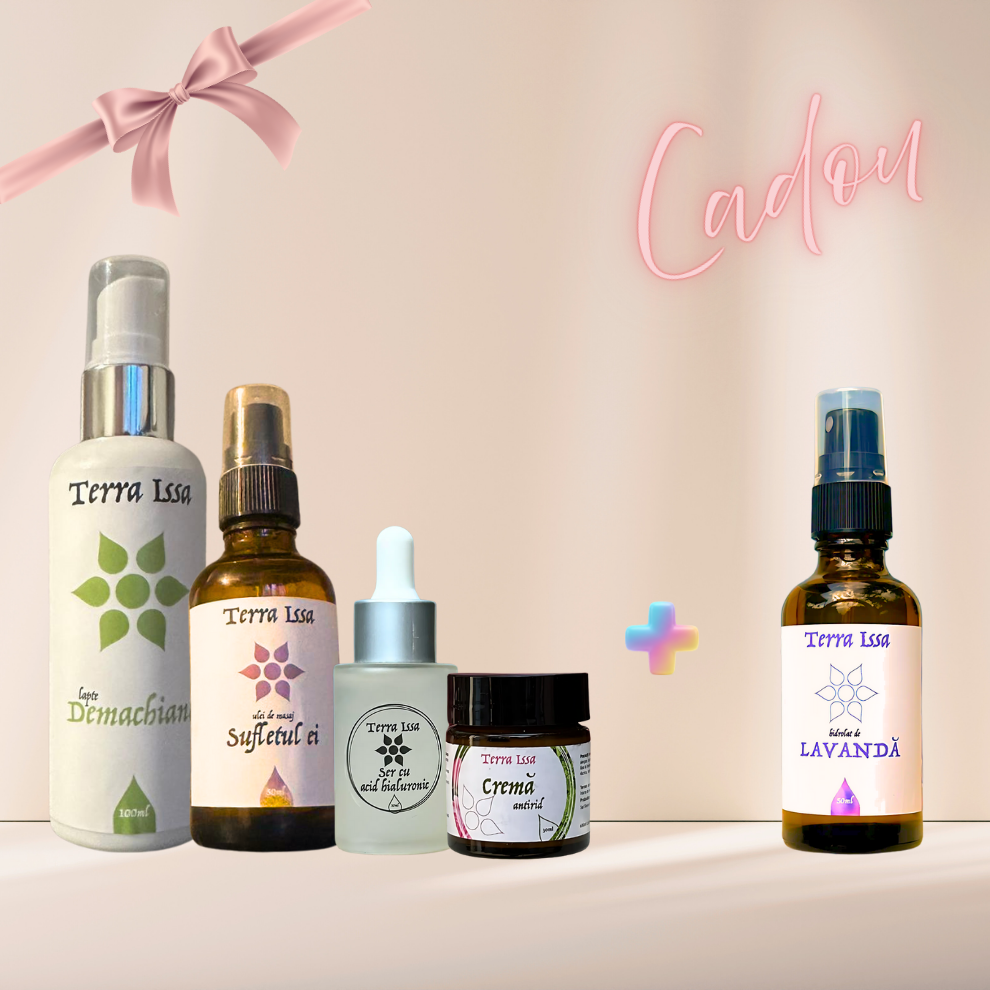 Acest pachet este creat pentru un ritual complet de îngrijire și masaj facial, inspirat din tehnici de stimulare limfatică și regenerare naturală a pielii. Reunește patru produse care acționează complementar: demachiantul cremă pentru curățare blândă, serul cu acid hialuronic pentru hidratare profundă, crema antirid pentru fermitate și netezire și uleiul „Sufletul Ei” adaptat pentru masajul feței, cu efect tonifiant și echilibrant. În plus, pachetul include apă florală de lavandă CADOU, pentru calmare și echilibru. Împreună, formează un ritual complet pentru un ten luminos, ferm și relaxat.